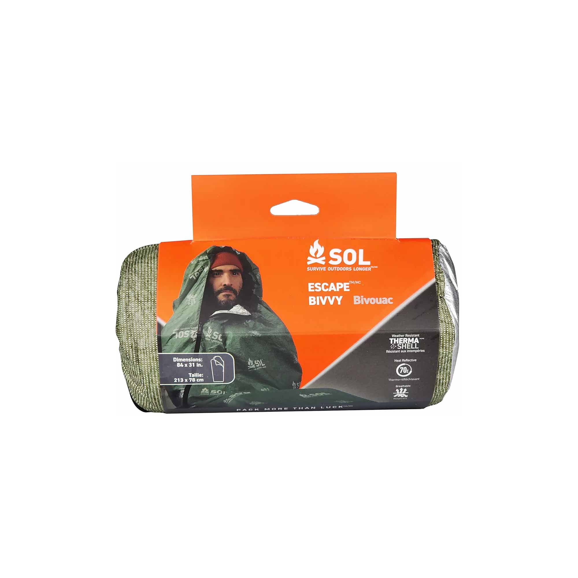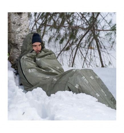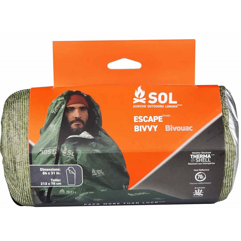 Der Bivouac Escape Survival Shelter mit Kapuze ist nichts weniger als eine Revolution in der Welt der Notunterkünfte. Bei den meisten Notunterkünften ist das Problem immer das gleiche: Sobald die Temperatur zu steigen beginnt und man durchnässt ist, bildet sich im Inneren Kondenswasser. Mit dieser Notunterkunft von SOL ist Kondenswasserbildung kein Problem mehr, Sie müssen sich nicht mehr zwischen trocken und warm entscheiden. Atmungsaktives Material lässt Feuchtigkeit entweichen und schützt Sie gleichzeitig vor Regen, Wind, Schnee und Kälte. Diese Notunterkunft speichert 70 % Ihrer Körperwärme. Wasserdichte Nähte sowie ein Kordelzug an der Kapuze und ein seitlicher Reißverschluss ermöglichen es Ihnen, Ihre Unterkunft vollständig abzudichten und als Schlafsack zu verwenden.