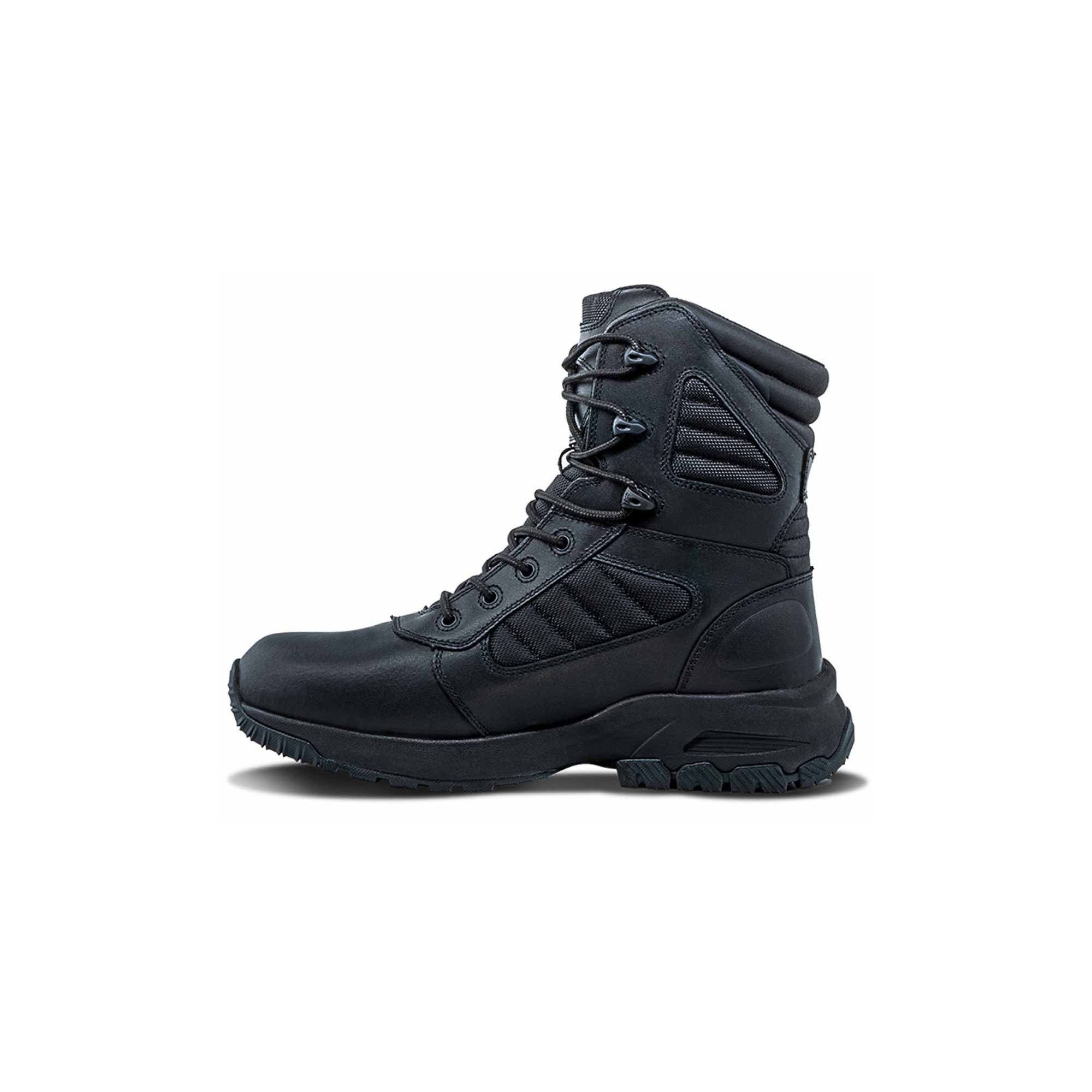 Die MAGNUM Lynx Plus Rangerstiefel verfügen über eine komplett antimagnetische Zehenkappe, eine antibakterielle Behandlung und eine Schnellschnürung für schnelles Anziehen.