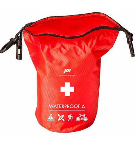 Pharmavoyage waterproof first aid kit, multi-purpose, lightweight and compact, suitable for outdoor water sports as well as travel to tropical countries or humid regions. This waterproof first aid kit is ideal for all sports such as canoeing, kayaking, rafting, paddleboarding, and even mountain biking or hiking. With its contents, you can deal with minor aches and pains.