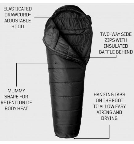 Sleeper Extreme: a warm sleeping bag from Snugpak, robust and comfortable in synthetic fibers which give a soft touch and extend the lifespan compared to a traditional product. Widely used by tactical troops in the UK for comfort.