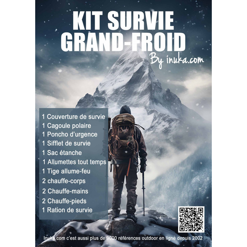Kit especial de supervivencia para frío extremo, +55° durante más de 50 horas. Este kit de supervivencia en frío extremo es útil para todas tus actividades al aire libre con tiempo muy frío, esquí, paseos con raquetas de nieve, motos de nieve, expediciones...