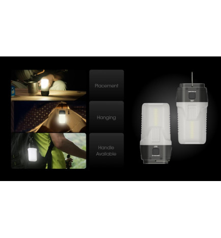 La linterna de vivac NiteCore LR70, con una potencia de 3000 lúmenes y un alcance de 300 m, se recarga mediante USB, encendedor, paneles solares, etc. Es ideal para acampar, vivac, pescar, etc.
