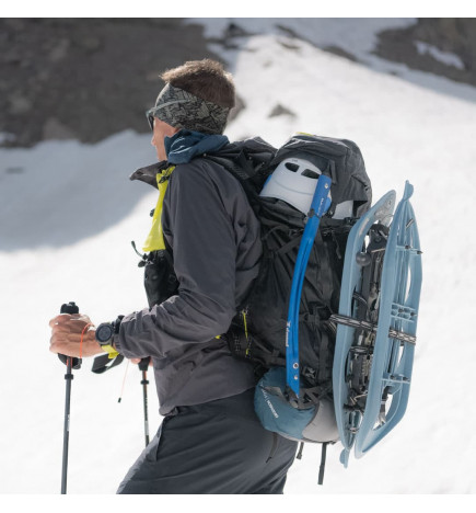 En los laterales y en la parte trasera, transporta fácilmente tus esquís, raquetas de nieve, lonas, cuerdas y cascos gracias a los distintos enganches y correas extraíbles.