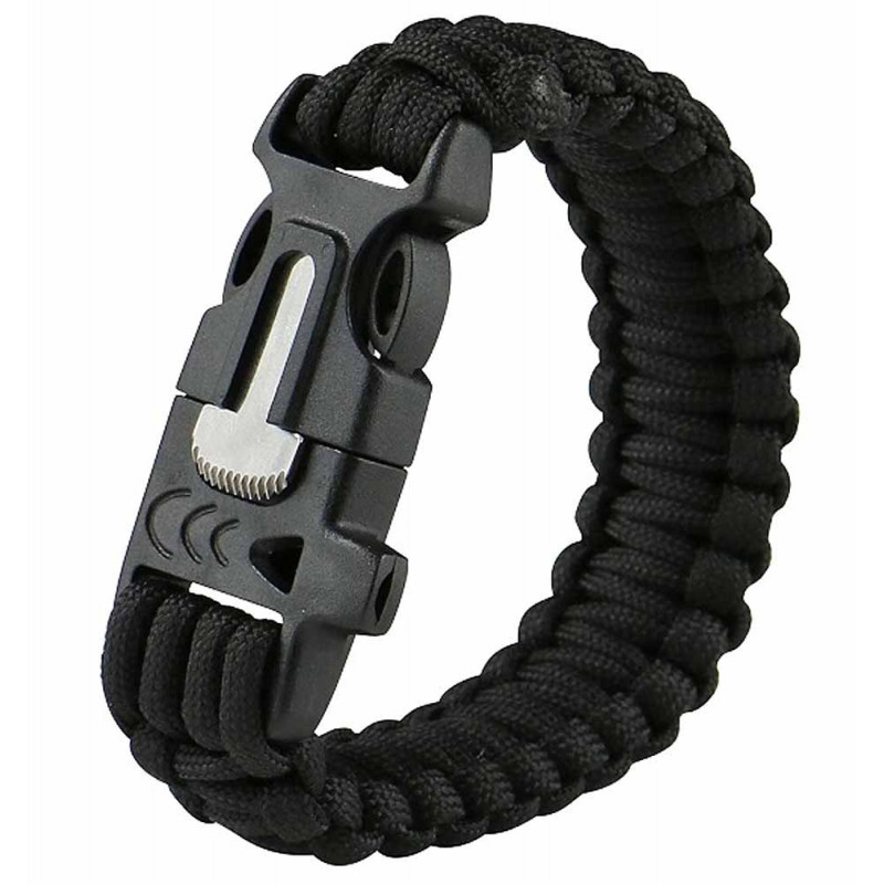 La pulsera de supervivencia de paracord con silbato, pedernal y raspador, accesorio imprescindible de supervivencia, se puede utilizar para hacer una trampa, una balsa, un refugio o para reparar ropa, zapatos, etc.