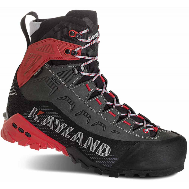 La parte superior de nubuck de la más alta calidad de las Kayland Stellar Nubuck GTX, se combina con un excelente aislamiento contra los elementos garantizado por Gore-Tex. Membrana Performance Comfort y una construcción de bota que ofrece un ajuste envolvente y protector inigualable con un borde protector y cuello de Lycra. La protección adicional la proporciona la puntera reforzada con goma de alto rendimiento y el sistema Kayland Ankle Lock que sujeta el tobillo y garantiza un movimiento natural. La característica más destacada de la gama Stellar es su suela: el pie descansa directamente sobre la suave entresuela de EVA que proporciona una mayor amortiguación durante las pisadas y los impactos en terrenos irregulares. La suela Vibram® Stellar fue diseñada exclusivamente para Kayland. La construcción interna presenta un diseño alveolar que aligera la estructura, mejora el aislamiento térmico y proporciona una excelente absorción de impactos. La entresuela cubierta de espuma de PU de doble densidad se asienta sobre la plantilla de PU, que también está perforada para reducir el peso y aumentar la estabilidad torsional. La suela contiene un ribete integrado para alojar crampones semiautomáticos.