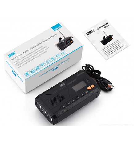 La radio MB290 August, est une radio compacte d'urgence solaire et dynamo, avec récepteur DAB DAB+ / FM, principalement conçue pour les situations d'urgence et de sécurité, où rester en contact est crucial. Plusieurs sources de recharge possibles : dynamo à manivelle, panneau solaire, port USB-C.