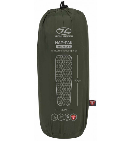 Il materasso gonfiabile da bivacco NAP-PAK Primaloft di Highlander, è un materasso compatto e leggero da 550 g per 3 stagioni. Grazie al suo spessore di 5 cm, alle sue cellule d'aria ben distribuite e all'imbottitura Primaloft, ti manterrà caldo e ti offrirà un comfort eccellente su tutti i terreni con un buon isolamento dal freddo e dall'umidità del terreno.