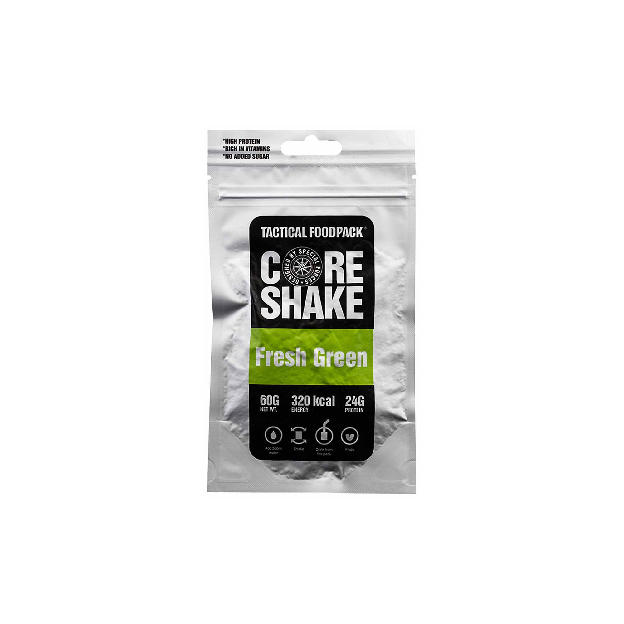 Il frullato proteico mela-spinaci-menta piperita di Tactical FoodPack è un frullato sano con superfood contenenti solo ingredienti naturali ad alto contenuto proteico, ricchi di vitamine e senza zuccheri aggiunti. 100% liofilizzato per preservare gusto, consistenza e sostanze nutritive.