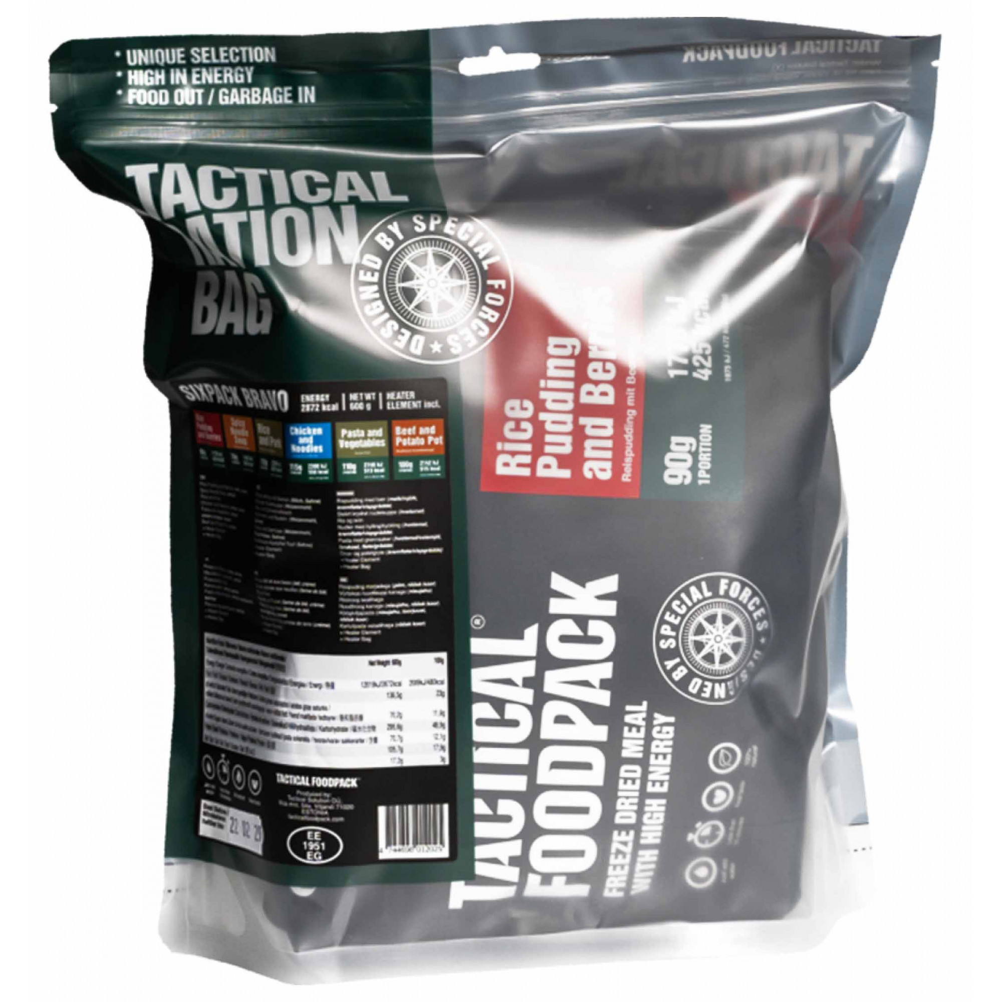 Tactical Food Bravo レーション パックタクティカル フードは 6 種類の食事で構成されており、2 日間にわたる完璧な詰め合わせです。ジッパーが付いており、一日中開閉できます。食品技術センター、各国の特殊部隊、プロアスリートとの緊密な連携により、タクティカルフードパックの食事は可能な限り軽く、最大限のエネルギーで現場の真のニーズに応えます