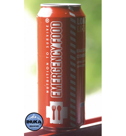 標高 1,332 メートルのピレネー山脈で採取された天然山岳ミネラルウォーターをベースにした、ロングライフ殺菌飲料です。この缶の水は約15年間保存できます。緊急事態、災害、海、砂漠、乾燥地帯などでの理想的な非常用水補給。