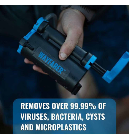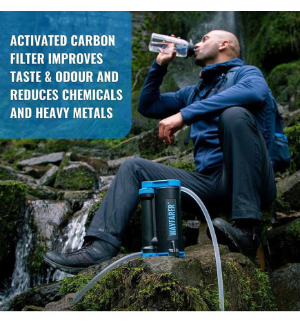 Wayfarer浄水器は、1.3mのスカベンジャーホースを使用して水を汲み上げ、フィルターを通過させます。 0.5mの出口ホースで精製水を安全にお届けします。中空糸膜は 2 段階の濾過により最大 5,000 リットルの水を浄化し、細菌、嚢胞、ウイルスを除去します。交換可能な活性炭ディスクは化学物質や重金属を削減し、味と臭いを改善します。 LifeSaver® Wayfarer は英国製で、長持ちするように作られています。強くて頑丈で、NSF/ANSI P231 規格を超える限界までテストされています。健康と水分補給を真剣に考える冒険家やバックパッカーにとって完璧なソリューションです。