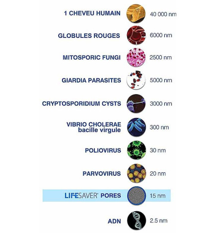 交換用カートリッジはオリジナルの LifeSaver ボトル (4000UF および 6000UF) と互換性があり、最大 6,000 リットルの飲料水を浄化します。すべての細菌、ウイルス、嚢胞、寄生虫、真菌および微生物起源の他の病原体を除去します。独立した状況に最適です。 LifeSaver は、このようなレベルでフィルタリングできる世界で唯一のウェアラブル テクノロジー (世界中で特許取得済み) です。既知の最小のヒトウイルスは 25 ナノメートル (0.025 ミクロン) のポリオであることがわかっているので、どこにいても安全に飲酒や調理ができるようになりました。 LifeSaver® は、水中に存在する可能性のあるすべての細菌、ウイルス、嚢胞、およびあらゆる病原体をブロックします。どこにでも、誰にでも飲料水を!