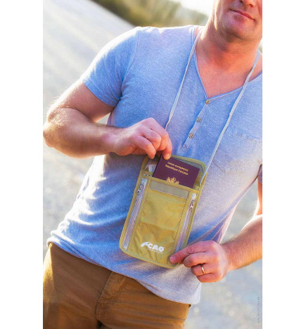Bolsa de segurança para viagem no pescoço, especialmente projetada para transportar seu dinheiro e papéis com segurança durante a viagem.