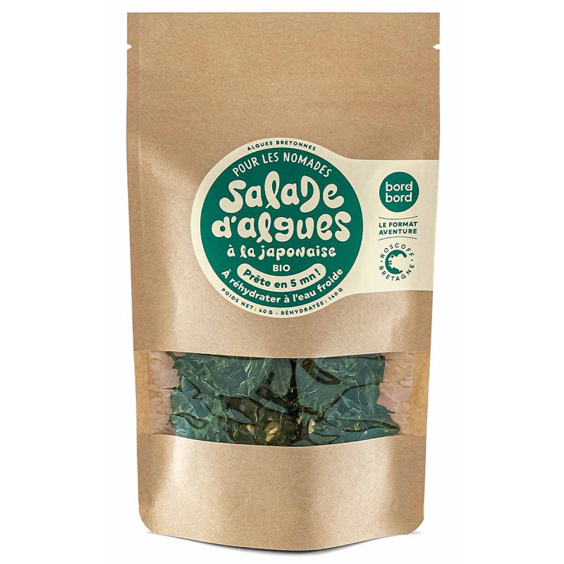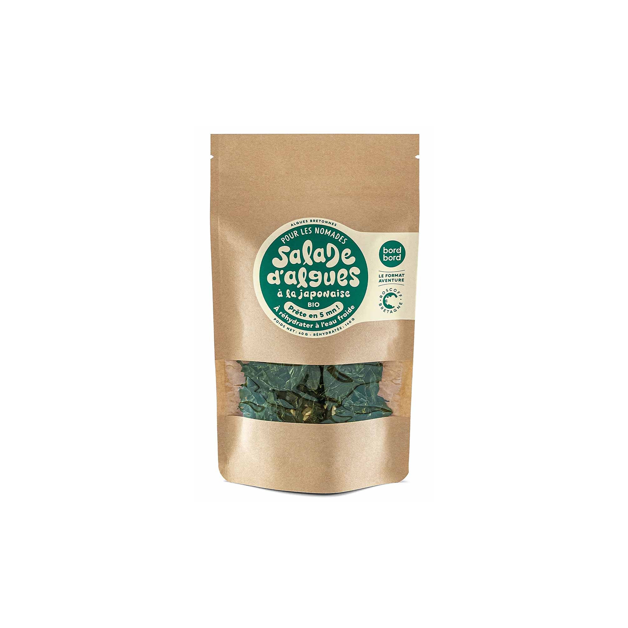 Aqui está uma salada de algas para nómadas aventureiros, não se preocupe com este saco de salada de algas para reidratar em 5 minutos com água fria! Este formato é a versão definitiva da nossa salada, sua bolsa permite que ela dure vários dias na mochila sem furar. Ele irá acompanhá-lo em todas as suas aventuras! Dosar água fria é fácil com a marca na janela transparente, o molho está incluído. Sabores equilibrados com o nosso vinagrete “estilo japonês”, um crocante agradável como uma alga acabada de pescar. 100% reciclável! Esta salada desidratada vai durar vários meses, quando quiser, basta abrir, retirar o pacote de molho, colocar água fria no fundo da janela transparente, “sacudir” e esperar 5 minutos, mexendo de vez em quando. Só falta adicionar o vinagrete e saborear. Ideal acompanhado de uma fatia de pão integral, um pedaço de queijo e um pedaço de fruta.
