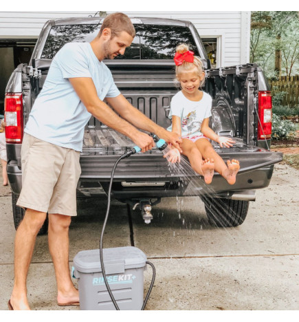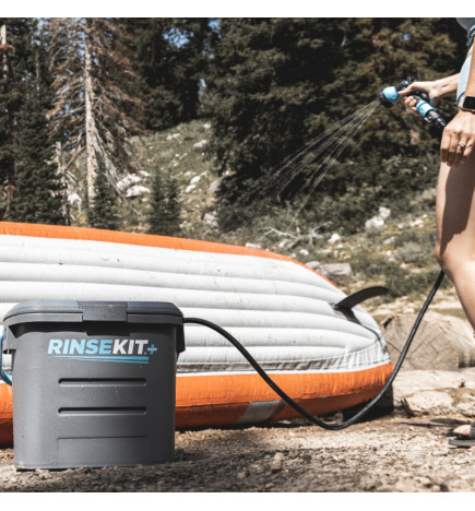 O chuveiro portátil RinseKit Plus oferece uma versatilidade excepcional com a sua capacidade de 7,6 litros, satisfaz todas as necessidades, seja em viagem, atrelado, Van-Life, bushcraft... Pode colocá-lo no chão e lavar-se onde quer que esteja com pressão, sem bomba ou bateria.