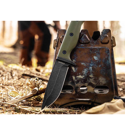 A Magnum Bushcraft Drop da Boker é uma faca robusta para suas aventuras ao ar livre a um preço acessível. Para viver sua experiência na natureza, a adaga Bushcraft Drop da Boker está equipada com uma poderosa lâmina de ponto de queda 440A com leve ricasso e leve escala de cabo verde oliva G10. Graças à construção com espiga completa, ao toque ergonômico e à proteção de mão distinta, mesmo tarefas difíceis, como aparar pequenos galhos ou cortar cordas, são fáceis e seguras. A aparência exterior discreta é destacada pelo robusto acabamento em pedra preta da lâmina e pelos impressionantes parafusos do cabo. Vem com orifício para cordão, bainha Kydex confortável e adaptador de cinto.