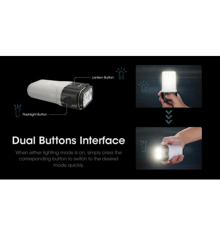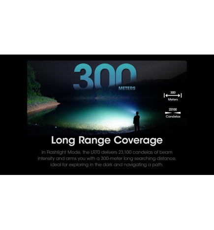 A lanterna de bivaque Nitecore LR70, com uma potência de 3000 lúmens e um alcance de 300 m, é recarregável através de USB, isqueiro, painéis solares, etc. Uma lanterna ideal para acampamentos, bivaques, pesca, etc.