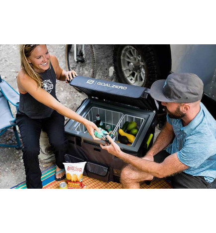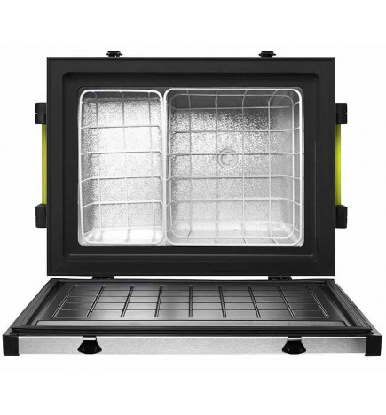 Prático refrigerador portátil de 52,6 L. A temperatura pode cair até -20° C, permitindo que seja usado como refrigerador ou freezer. Tem espaço de 53 litros e comporta até 25 garrafas de 750 ml. Esta geladeira manterá sua comida, seu piquenique ou seus medicamentos frios. Ideal para camping, motorhomes, van-life, viagens, ONGs...
