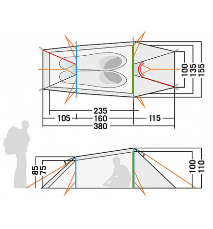 A barraca Gargia 2 da Tatonka é uma barraca de acampamento bushcraft robusta e leve para duas pessoas, com um espaço extra longo para dormir. O Gargia 2 possui barraca interna de 2,35 metros de comprimento, na qual até pessoas altas podem deitar-se confortavelmente, e acesso frontal à barraca externa com vestíbulo de bagagem.